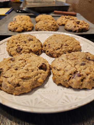 Gluten free rolled oats, Flour blend (Rice flour, whole grain brown rice flour, sorghum flour, tapioca starch, potato starch, calcium carbonate, niacinamide, reduced iron, thiamin hydrochloride, riboflavin, xanthan gum, cellulose gum), brown sugar, dried sweetened cranberries (contains sugar, sunflower oil), egg, coconut milk, cinnamon, baking soda, baking powder, salt